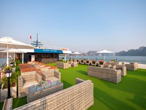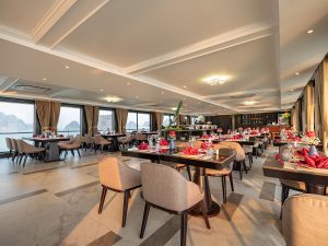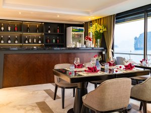 Situated on the 3rd deck, the Doria Lounge & Skybar provides stunning panoramic views of Lan Ha Bay. It is the perfect spot for pre-dinner cocktails or an afternoon tea break, offering a peaceful and scenic atmosphere. The Skybar remains open until midnight, serving a selection of signature drinks. Whether you wish to relax with friends or celebrate a special occasion, this is an ideal place to enjoy the beauty of the bay.