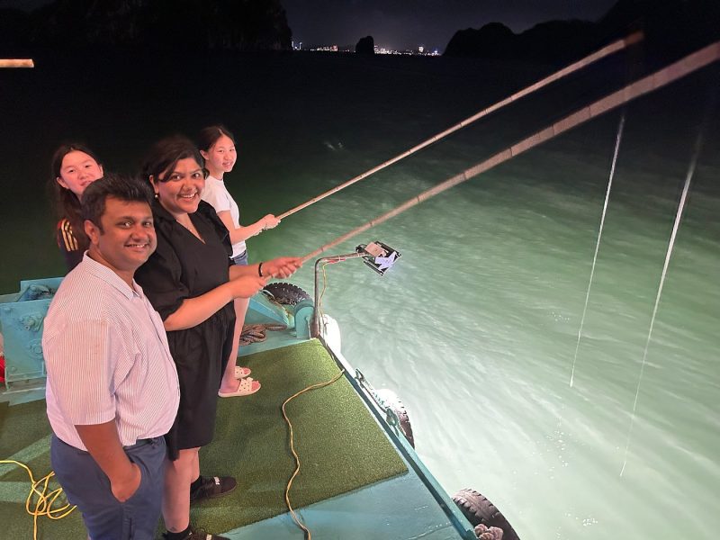Squid fishing is a captivating nocturnal activity offered aboard the Doria Cruise, providing guests with an authentic glimpse into the traditional maritime practices of Halong Bay. As night descends, the serene waters become the setting for this engaging pursuit, inviting participants to test their patience and skill in the art of squid fishing.